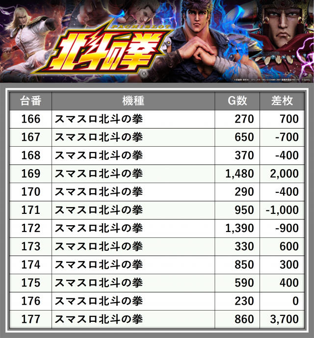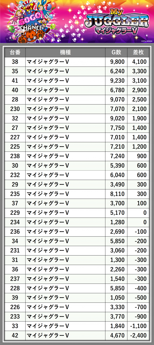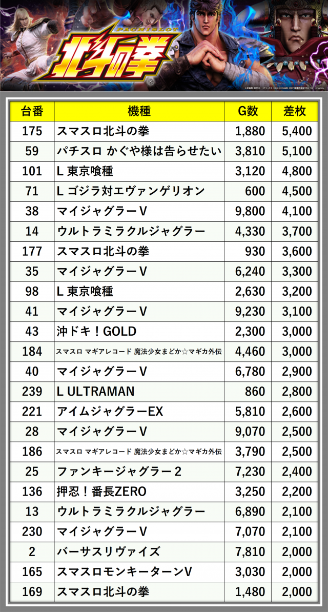 ※差枚数順に掲載しています