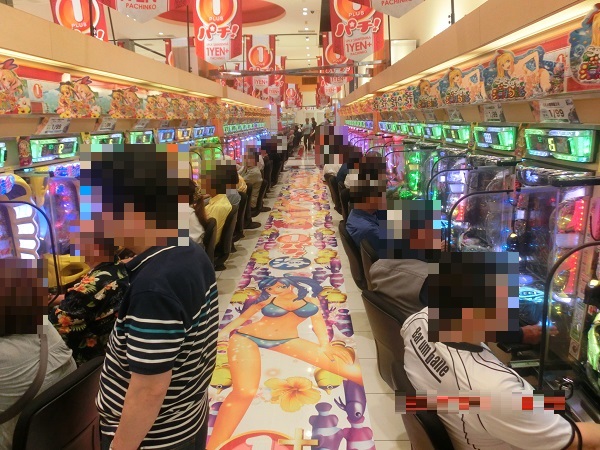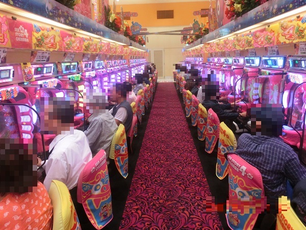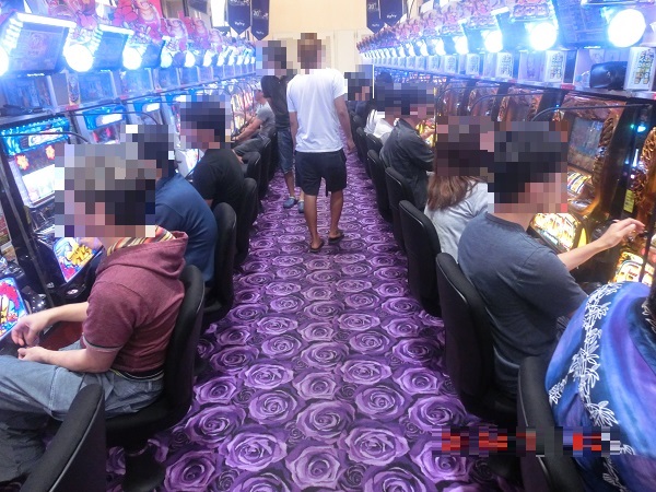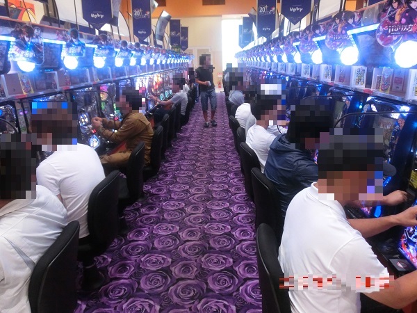 「CRスーパー海物語IN沖縄4」や「ぱちんこCR北斗の拳7 転生」などの定番機種も満席。プレイヤーの活気にあふれ、にぎやかなムードが広がっていた。