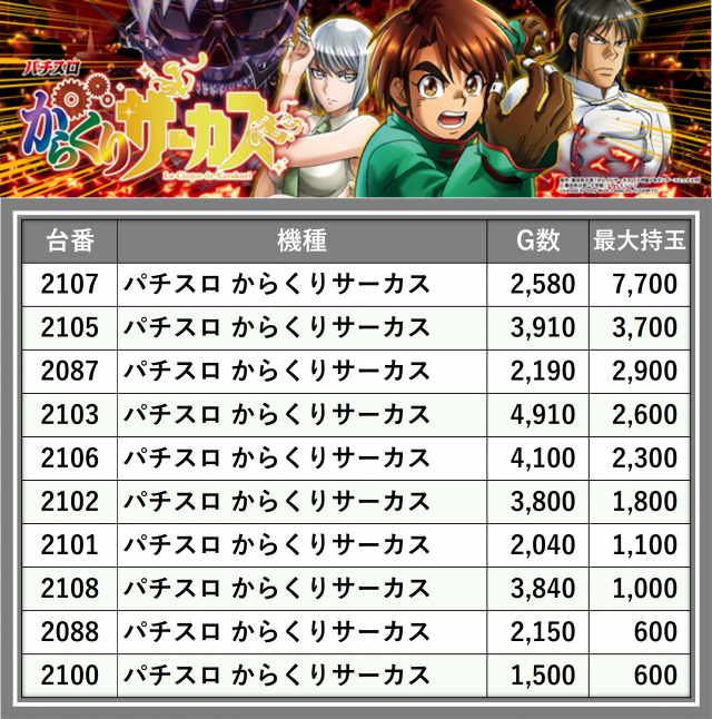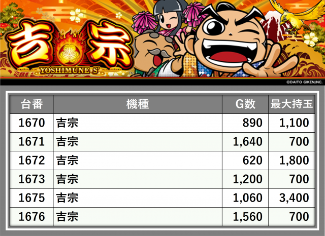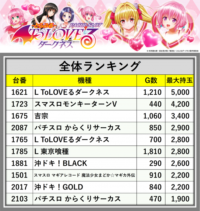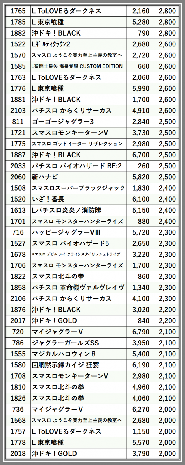 厳選された取材対象機種をはじめ、その他スロット全体から好記録が飛び出した!プレイヤーが楽しんだ1日を下記データにて振り返ってみて欲しい。