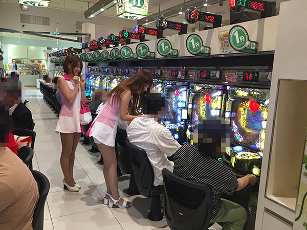 取材当日はぱちタウンエンジェルスも来店。プレイヤーたちとコミュニケーションをとる場面もあり、店内は明るい雰囲気に包まれていた。