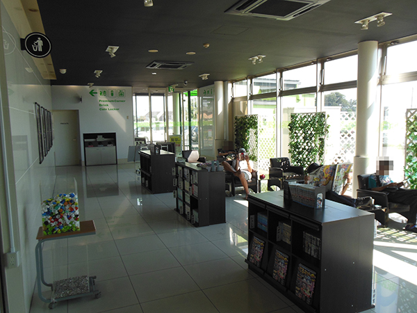 各台計数機や分煙ボードなど充実した設備も整うホール内は清掃も行き届いており、快適な環境が作られていた。また、暖かい日の差し込むレストスペースも居心地の良さから利用者も多い。