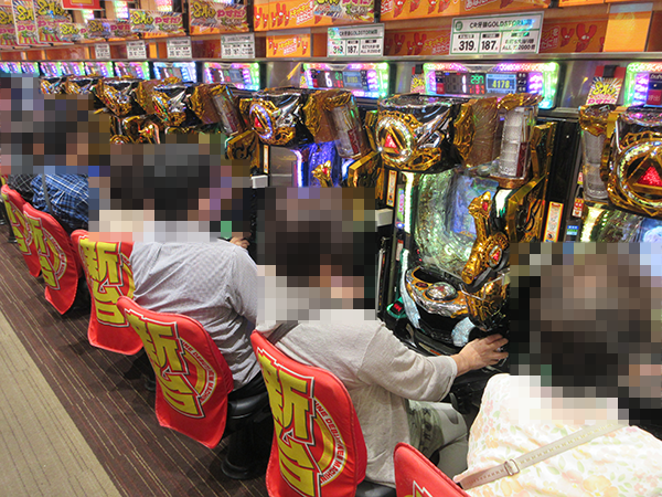 14時頃の4円パチンコをみると、「CR牙狼GOLDSTORM翔」と「CRアナザーゴッドハーデス アドベント」が人気。プレイヤーたちの明るい表情からは、満足感を得られていることも伝わってきた。