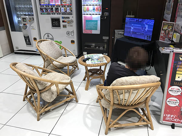 レストスペースにはテレビが完備されていて、取材時も椅子でゆったりとくつろぐプレイヤーが見られた。