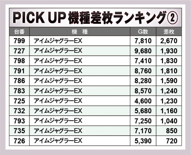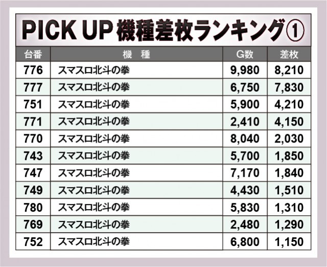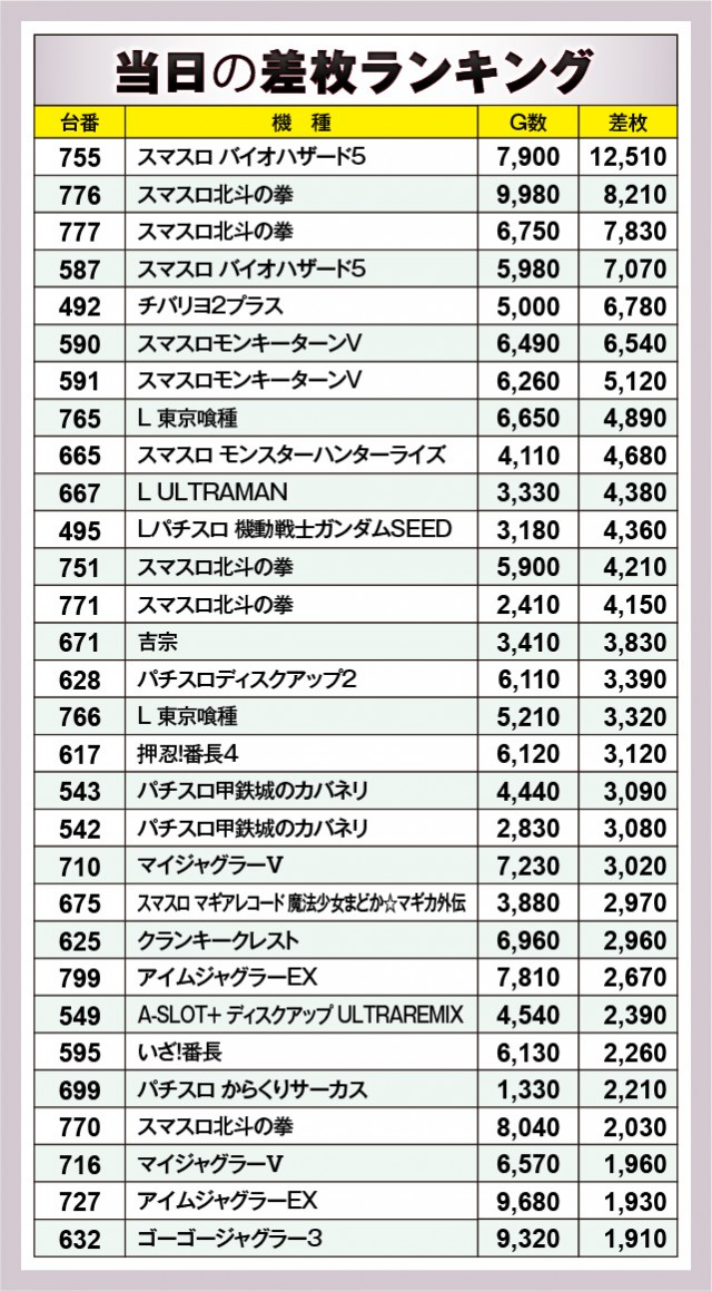 ※差枚数順に掲載しています。