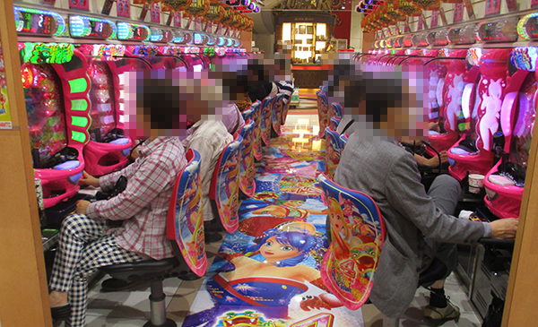 パチンコの「CR牙狼GOLDSTORM翔」や「CRアナザーゴッドハーデス アドベント」なども人気を集めており、あちこちが活気づいていた。