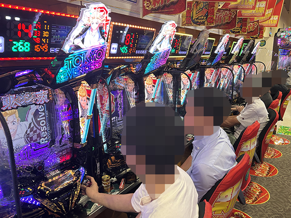15時半ごろの4.34円パチンコをチェックすると「eフィーバー炎炎ノ消防隊2 紅丸ver.」や「e東京リベンジャーズ」が盛況の様子。プレイヤーたちの満足気な表情が印象に残っている。