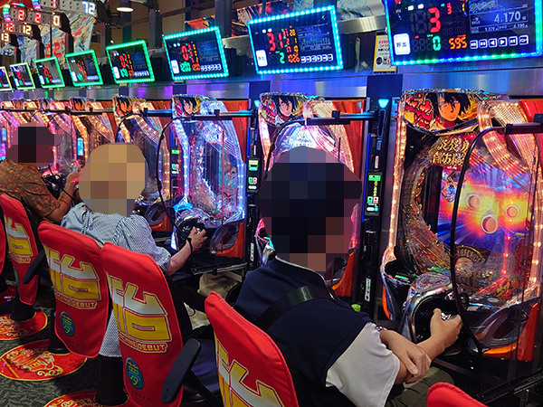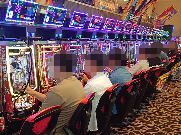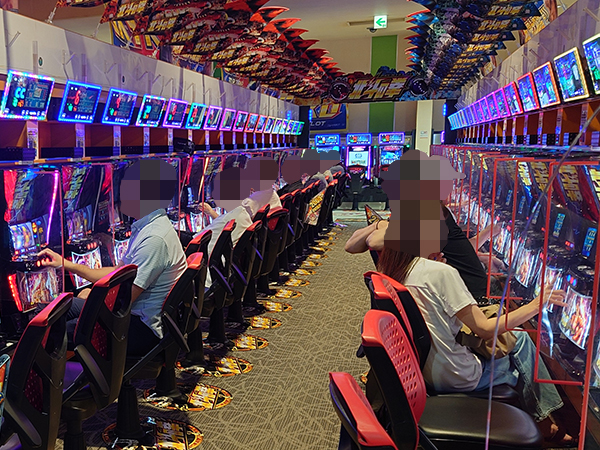 取材時は既に多くのプレイヤーであふれており、パチンコ・パチスロを問わず楽しげな表情でいっぱいだった。