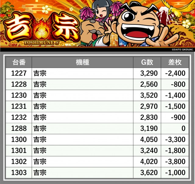 厳選された取材対象機種をはじめ、その他スロット全体から好記録が飛び出した!プレイヤーが楽しんだ1日を下記データにて振り返ってみて欲しい。