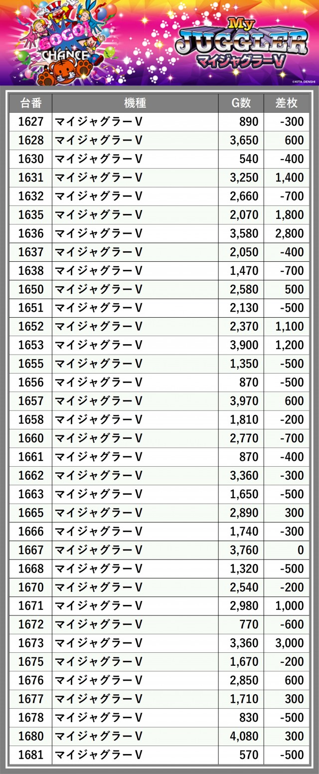 ※台番順に掲載しています
