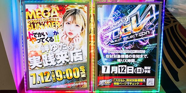 7月12日(土)セントラルMEGASTAGE1000南相馬ジャスモール店にて、DMMぱちタウンの新感覚取材「スロセレ」を実施。
