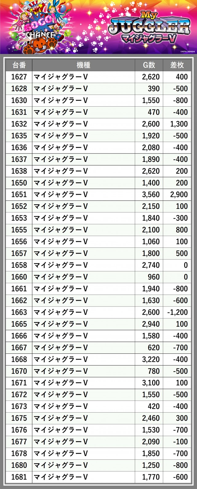 厳選された取材対象機種をはじめ、その他スロット全体から好記録が飛び出した!プレイヤーが楽しんだ1日を下記データにて振り返ってみて欲しい。