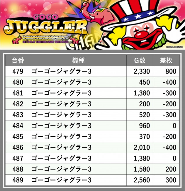厳選された取材対象機種をはじめ、その他スロット全体から好記録が飛び出した!プレイヤーが楽しんだ1日を下記データにて振り返ってみて欲しい。