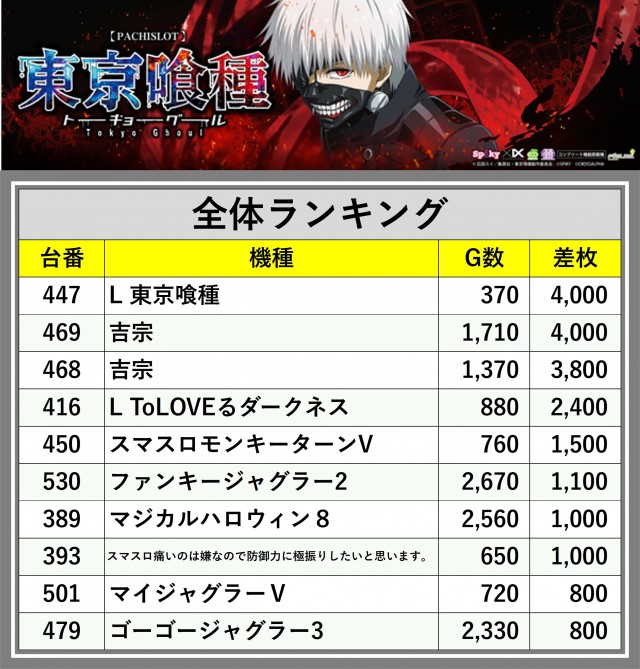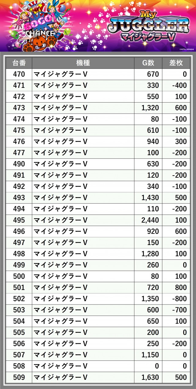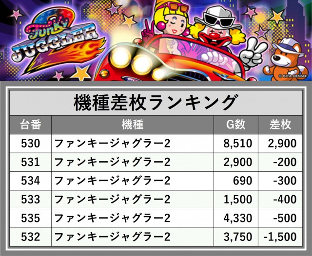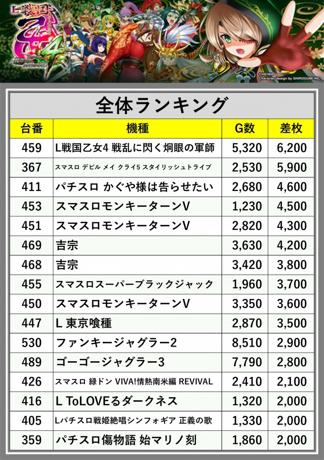 ※差枚数順に掲載しています