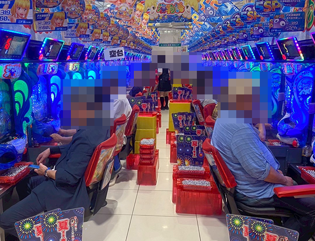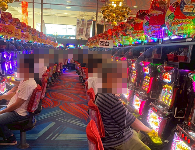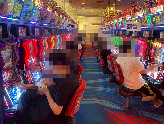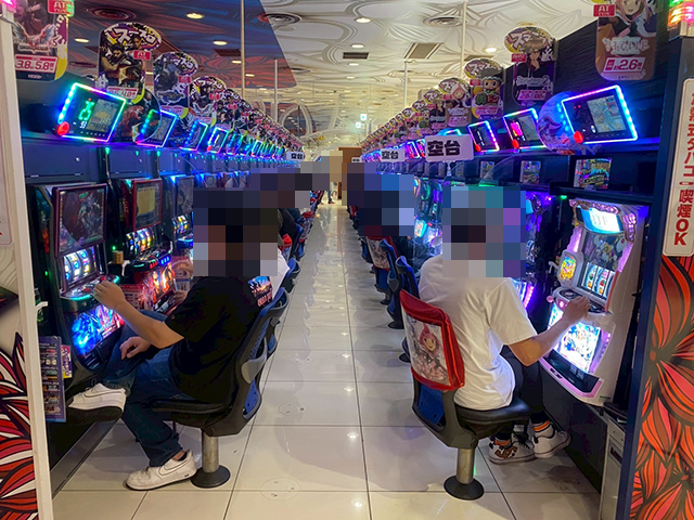 店内をみてみると、さまざまな機種が支持されており、パチンコとパチスロの両方が盛況となっていた。