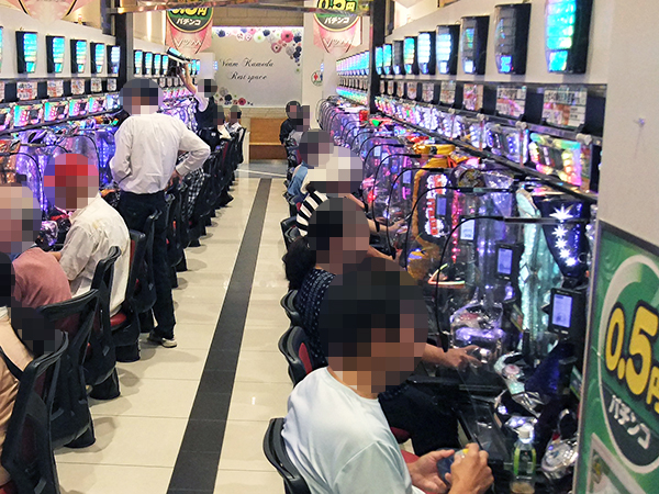 朝のパチンコを見てみると、人気を集めていたのが0.5円パチンココーナー。プレイヤーたちは豊富なラインナップの中から、お気に入りの台を選択しているようだった。