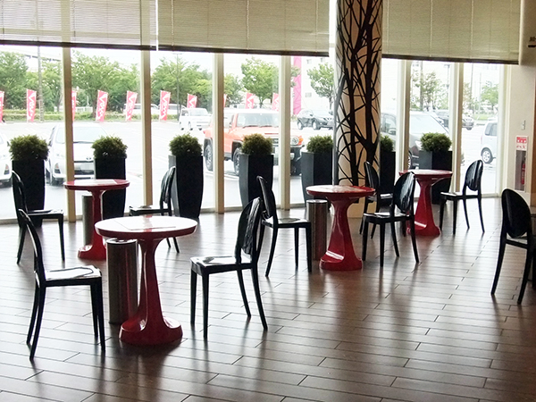 同店のレストスペースは広々としていて開放的。モダンなイスとテーブルが並べられ、お洒落なカフェにいるかのようだった。