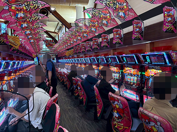 プレイヤーでにぎわう店内を見渡すと、パチンコ・パチスロともに明るい雰囲気が漂っていた。