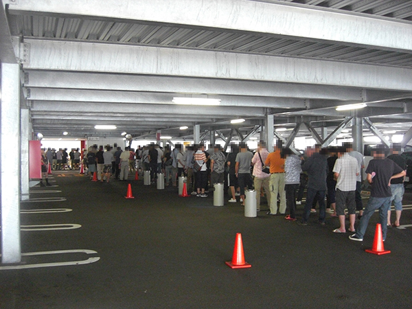 開店前から約200名ものプレイヤーが集合。遊技を心待ちにしているプレイヤーたちの熱気に包まれるなか、列が形成されていった。