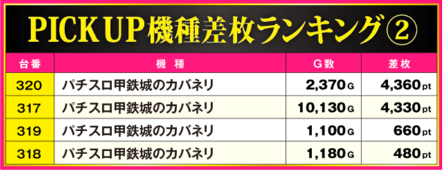 ※差枚pt順に掲載しています。