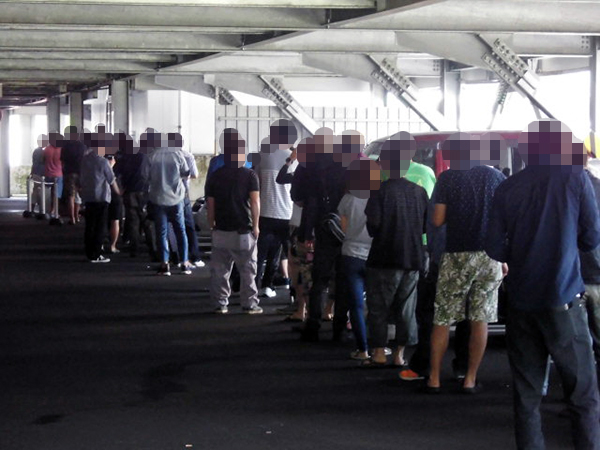 開店前からおよそ100名のプレイヤーが列を作っており、それぞれが遊技を心待ちにしている様子であった。