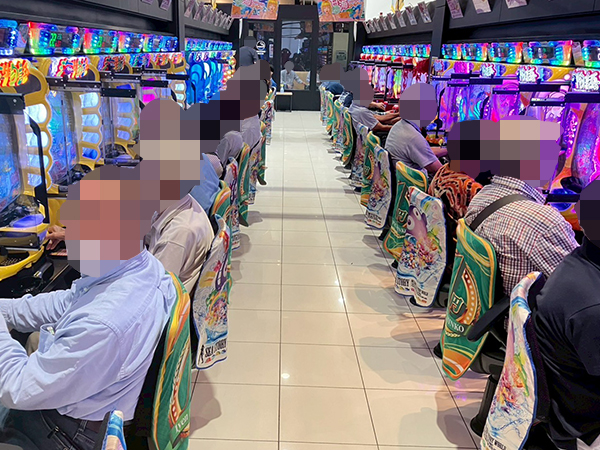 100円/89玉パチンコは海物語シリーズの支持が厚く、見事な活躍をするプレイヤーがあちこちで見られた。