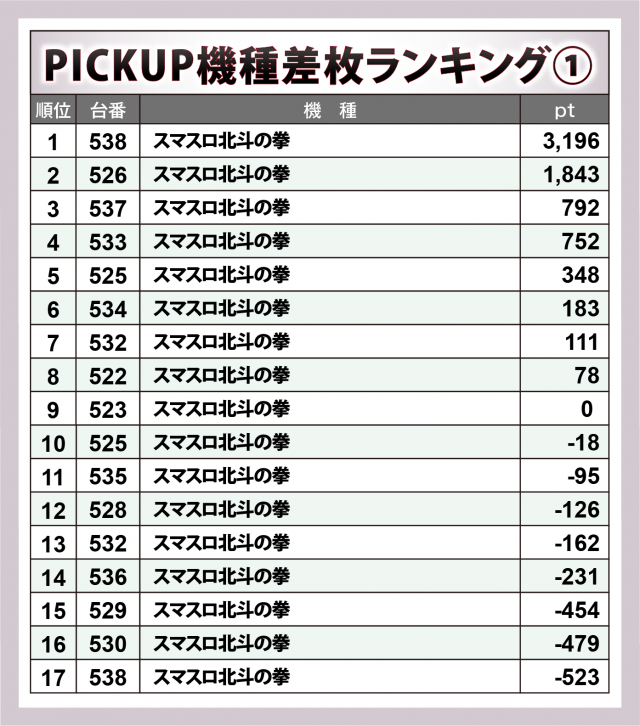 ※差枚数順に掲載しています。