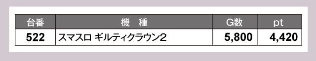 1台のみの『スマスロ ギルティクラウン2』が好成績で、今後の躍動にも期待できそうだ。
