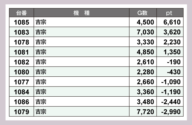 ※差枚pt順に掲載しています。