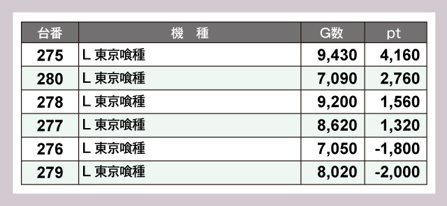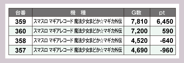 『スマスロ マギアレコード 魔法少女まどか☆マギカ外伝』と『L 東京喰種』、そして『いざ!番長』から優秀台が複数誕生。同店が少台数の機種にも力を入れている様子がうかがえた。