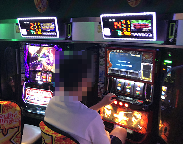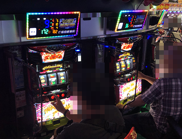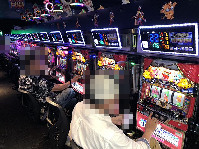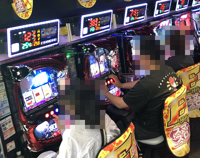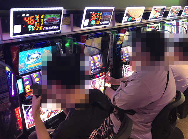 パチスロコーナーをまわっていくと、あちこちで魅力的なシーンがみられた。