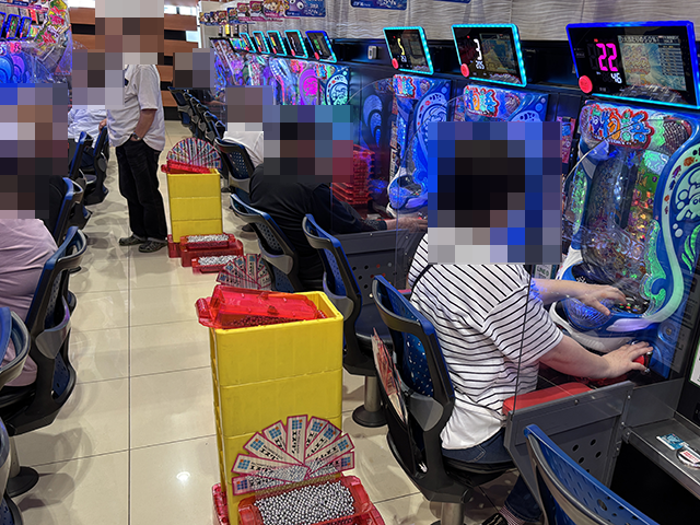 パチンコとパチスロの各コーナーをまわっていくと、さまざまな機種でプレイヤーの笑顔がみられた。