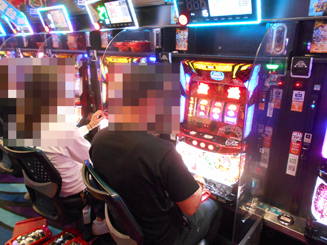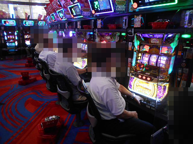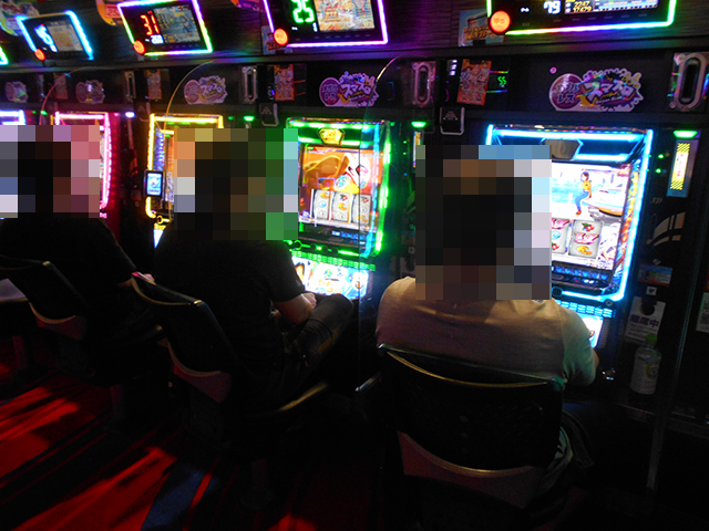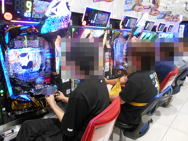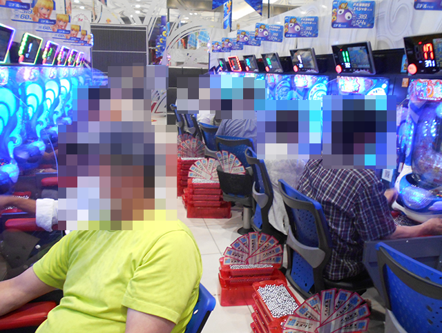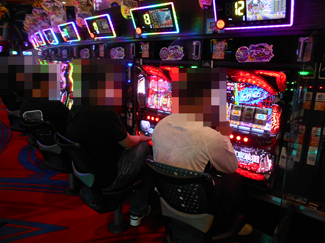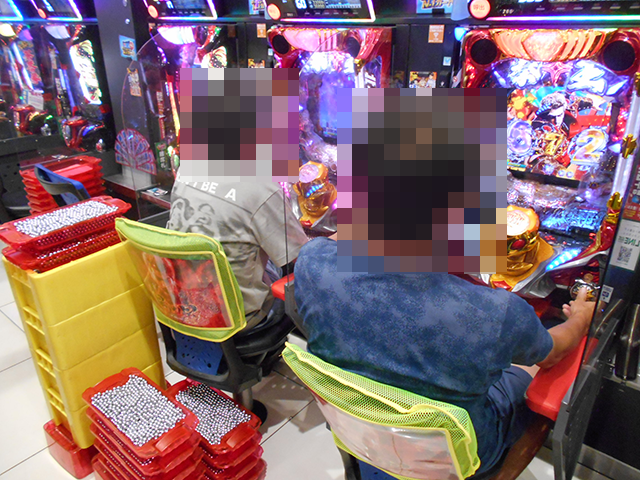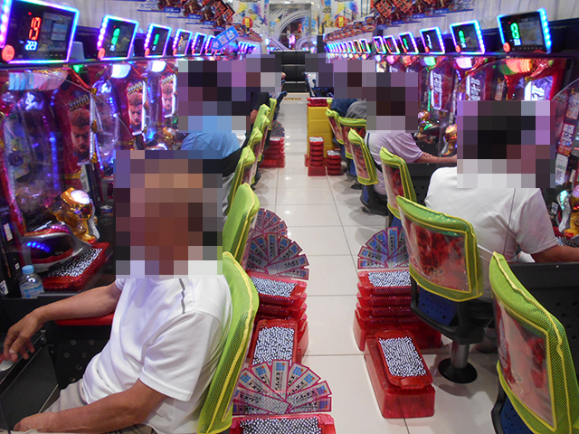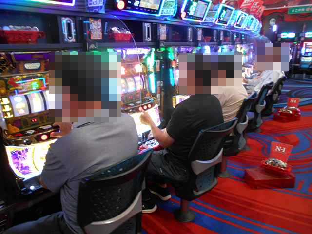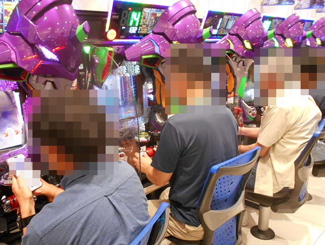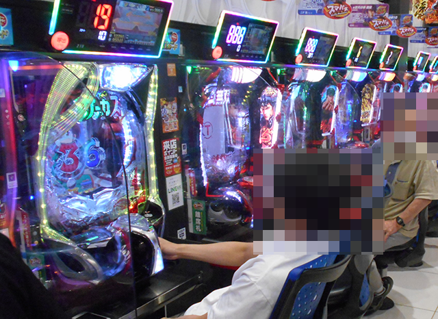 持ち玉を使って遊技をおこなっているプレイヤーが並び、シマ内は大にぎわいとなっていた。