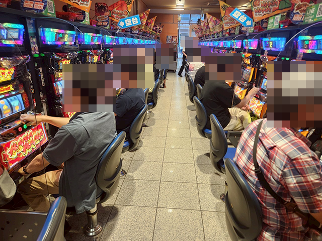 ホール全体をみていくと、パチンコとパチスロの各コーナーから活気が感じられた。