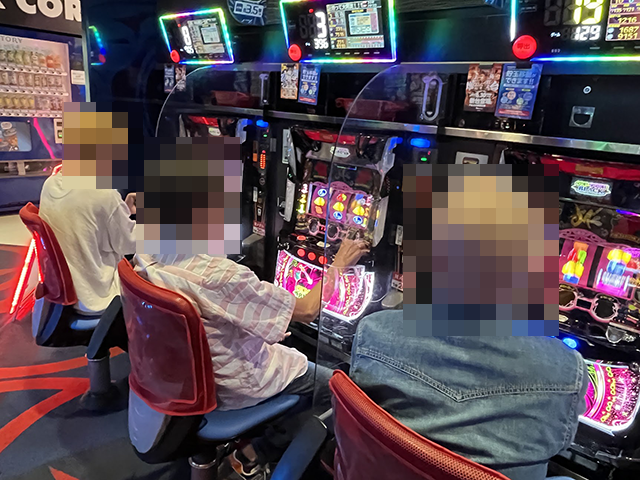 「沖ドキ!BLACK」や「ゴーゴージャグラー3」などで、プレイヤーたちは楽しそうに過ごしていた。