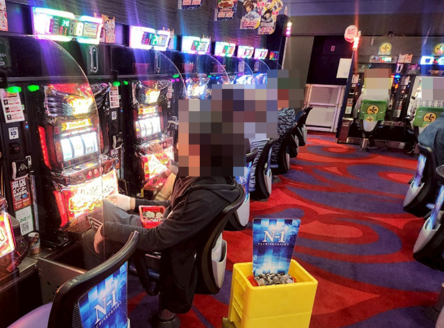 店内をみていくと、パチンコとパチスロの各シマに、決意が伝わってくる光景が広がっていた。