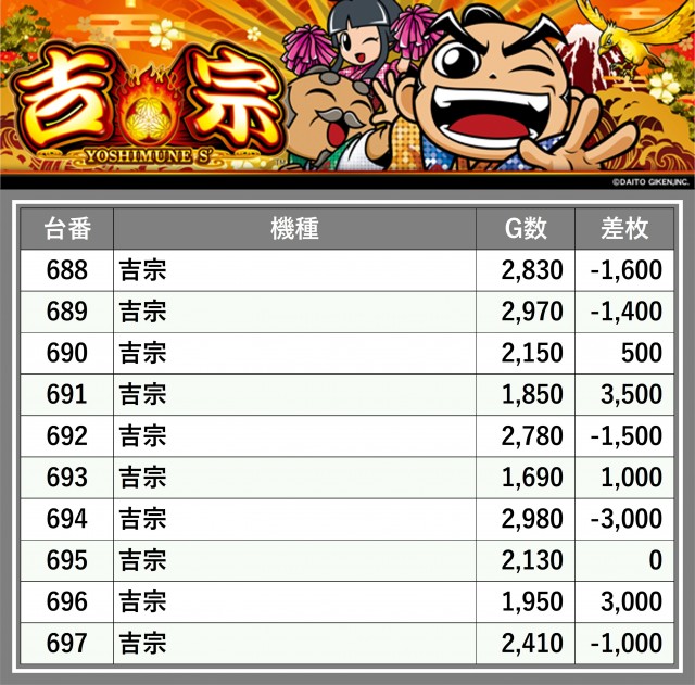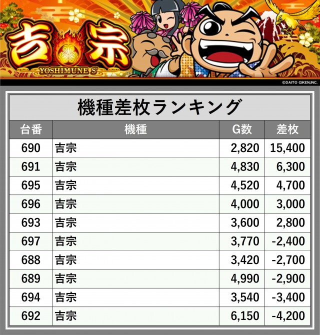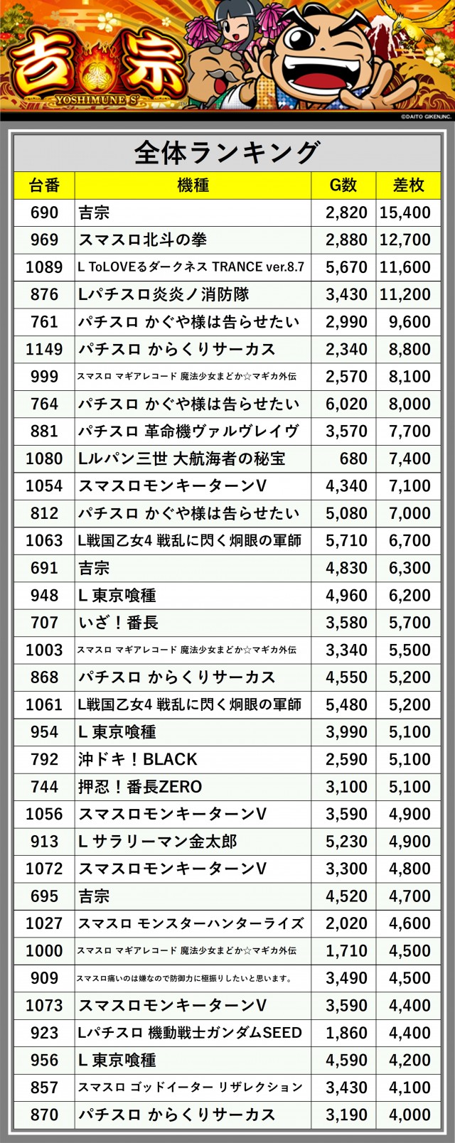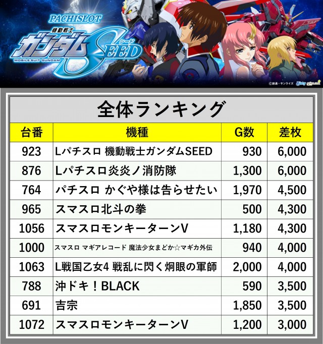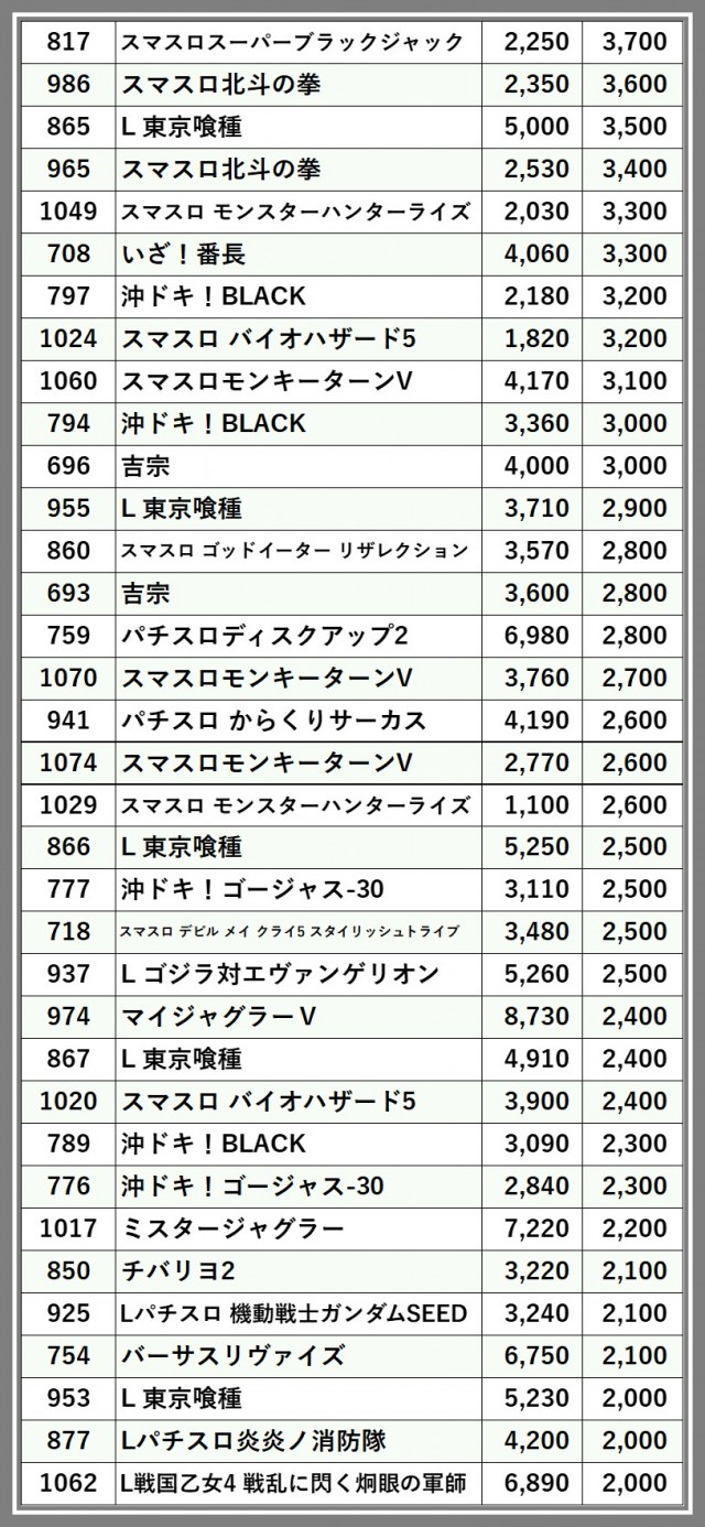 厳選された取材対象機種をはじめ、その他スロット全体から好記録が飛び出した!プレイヤーが楽しんだ1日を下記データにて振り返ってみて欲しい。