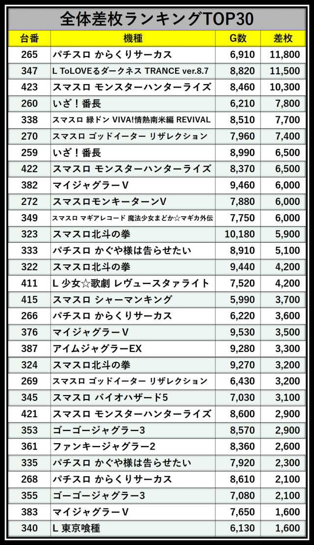その結果の中から、ぱちタウンが注目すべきポイントを厳選してユーザーにお届け!プレイヤーが楽しんだ一日を下記データにて振り返ってみて欲しい。