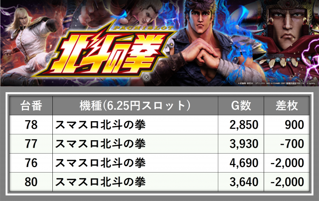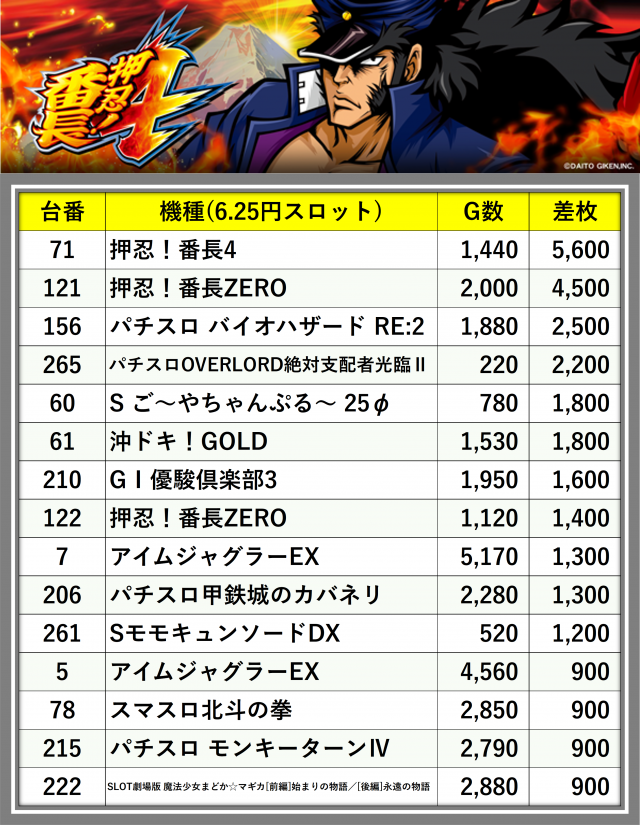 厳選された取材対象機種をはじめ、その他スロット全体から好記録が飛び出した!プレイヤーが楽しんだ1日を下記データにて振り返ってみて欲しい。