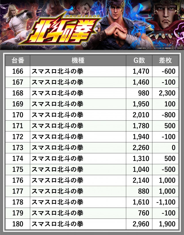 ※台番順に掲載しています