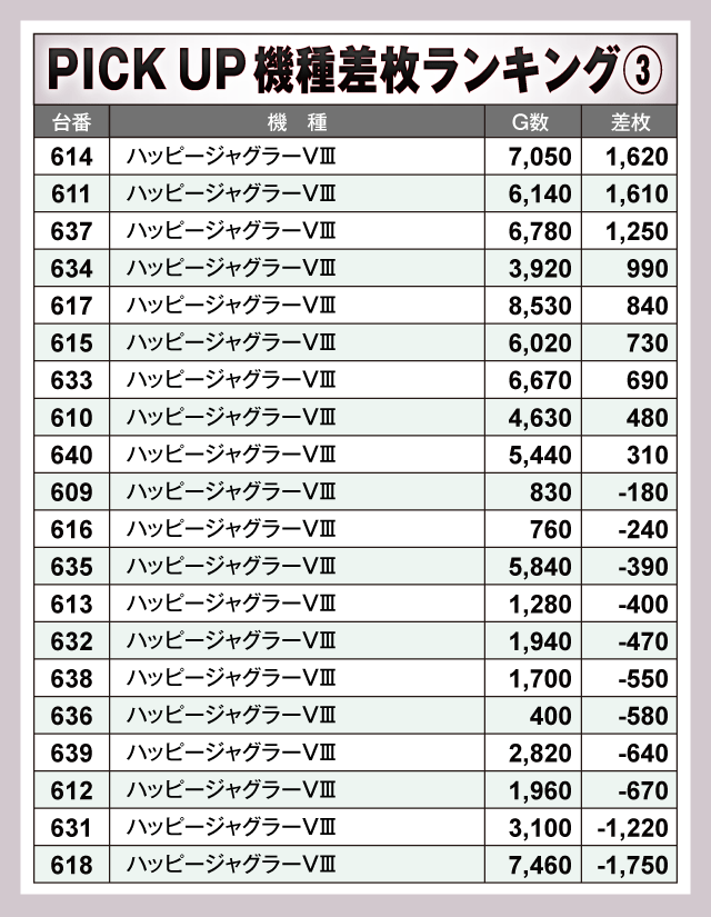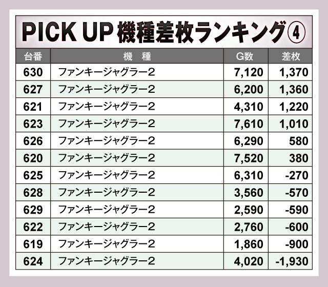 ※差枚数順に掲載しています。