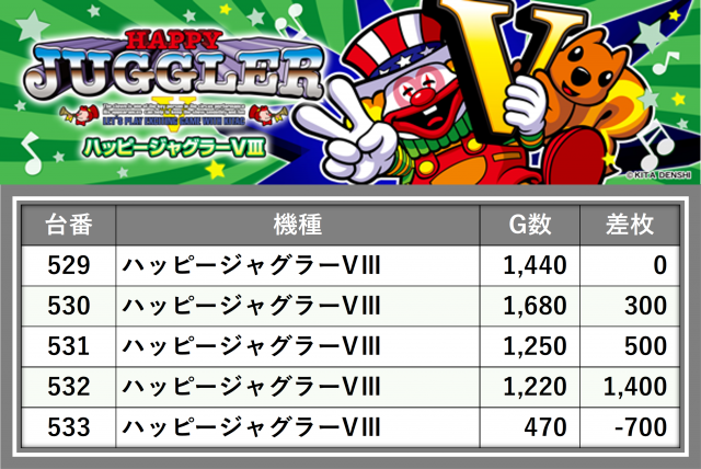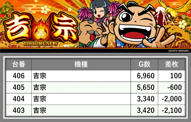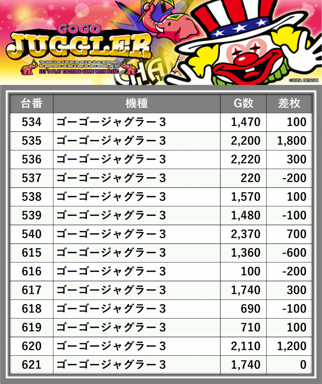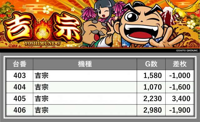 厳選された取材対象機種をはじめ、その他スロット全体から好記録が飛び出した!プレイヤーが楽しんだ1日を下記データにて振り返ってみて欲しい。