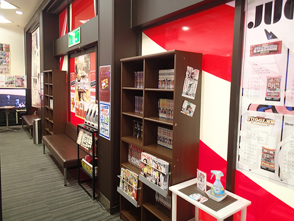 同店の1円パチンココーナーには、各台計数機や分煙ボードを完備。玉を気にせずに遊技ができることも嬉しい。さらに漫画本や雑誌、テレビが用意されたレストスペースには、消臭スプレーや携帯充電器などもあり、設備面が整っていることも、同店が支持を集める理由のひとつだろう。
