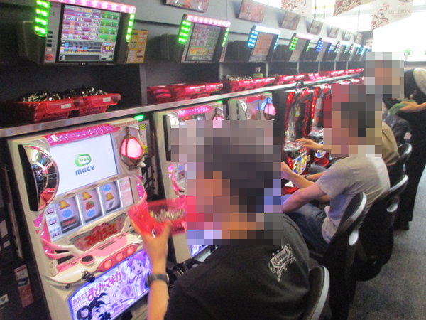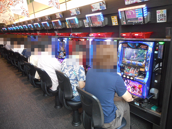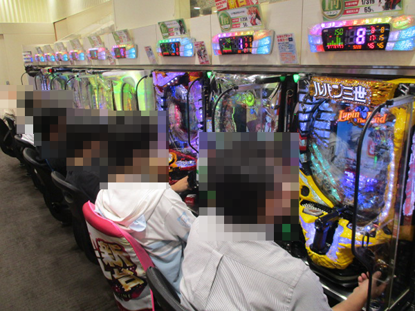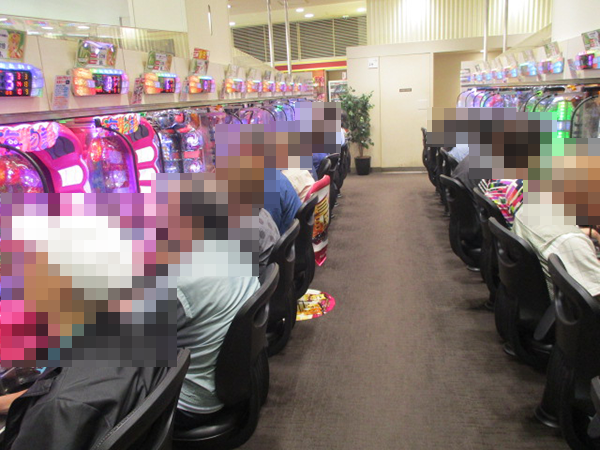 海物語シリーズや「CRぱちんこ必殺仕事人Ⅴ」、新台の「CRぱちんこ魔法少女まどか☆マギカ」などをはじめとしたパチンコにおいても、遊技をはじめるプレイヤーの姿があった。