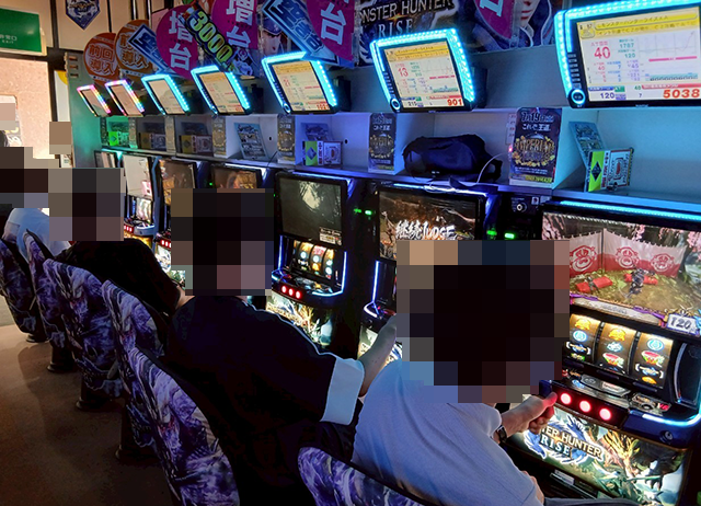 「スマスロ モンスターハンターライズ」や「スマスロモンキーターンV」でも、たくさんのプレイヤーが持ち玉で遊技中。