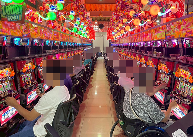 「アイムジャグラーEX」でも、プレイヤーたちは笑顔で遊技をおこなっていた。