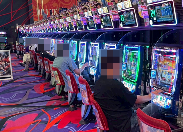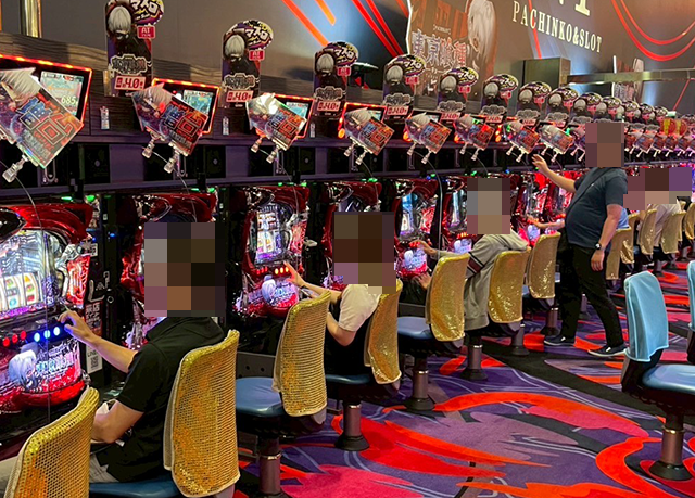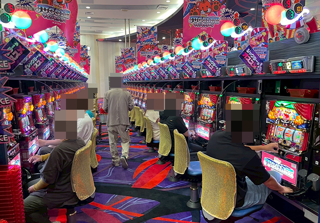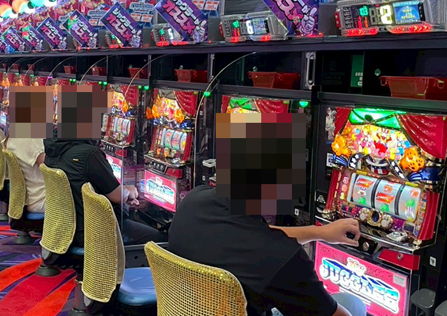 うれしそうに遊技をおこなうプレイヤーがおり、1箱以上の出玉もみられた。
