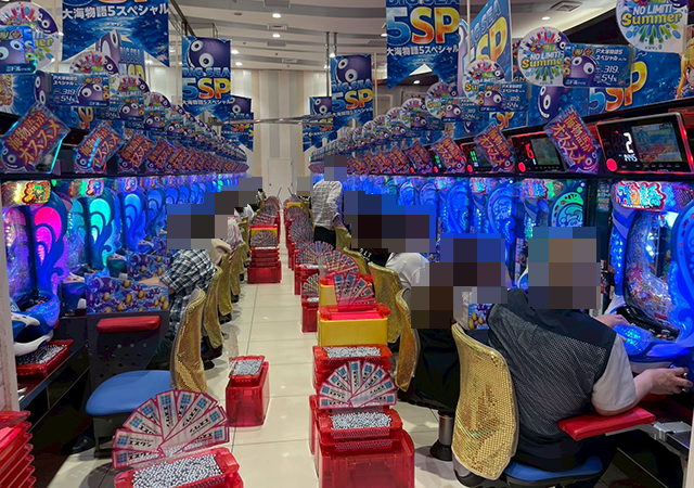 たくさんのプレイヤーが持ち玉で遊技をおこなっており、5箱以上の出玉となっている台も確認。