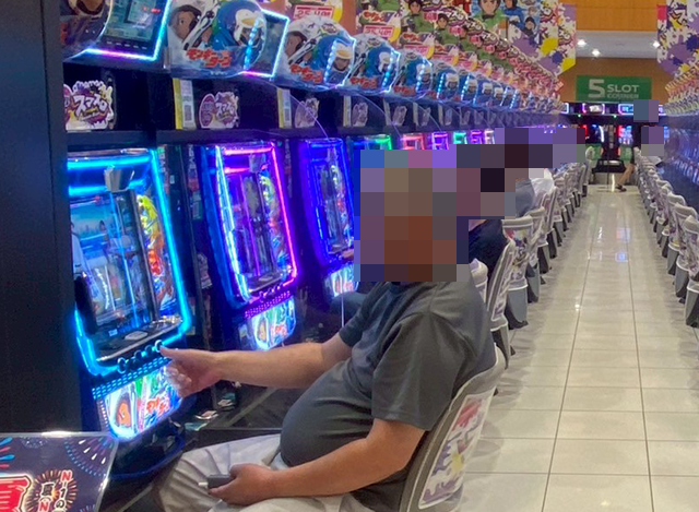 「ゴーゴージャグラー3」で、遊技を満喫しているようなプレイヤーを確認。