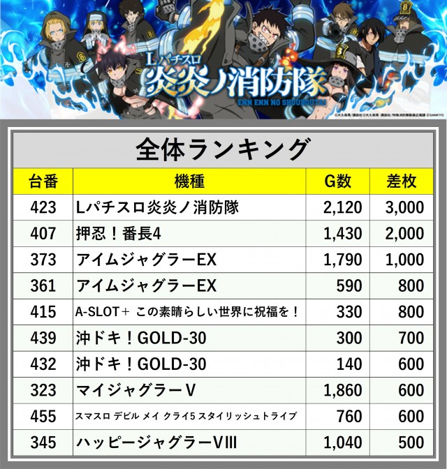 厳選された取材対象機種をはじめ、その他スロット全体から好記録が飛び出した!プレイヤーが楽しんだ1日を下記データにて振り返ってみて欲しい。