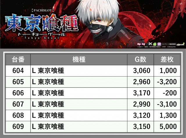 ※台番順に掲載しています